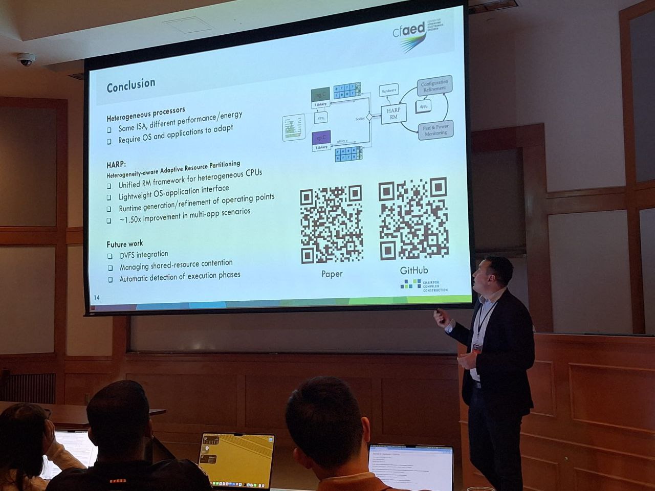 This award was presented for the paper “HARP: Energy-Aware and Adaptive Management of Heterogeneous Processors”, which is a result of a long-standing collaboration with Prof. Hermann Härtig and the Chair of Operating Systems. Robert Khasanov and Till Smejkal contributed equally to this work; the paper was presented at the conference by Robert Khasanov.