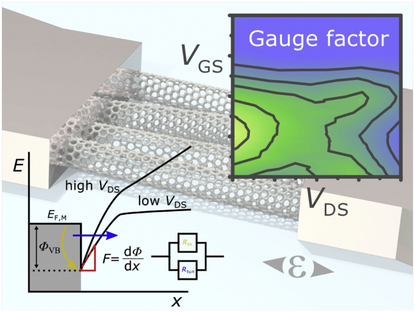 In this frame, we recently presented a deep study on MEMS integrated CNT piezoresistors showing more than 3 times higher sensitivity as silicon strain gauges [Sensors and Actuators A: 295, 15, 288 (2019)]. We exposed highly sensitive operation regimes pushing device performance to 150 %, utilized by modifying the CNT-metal Schottky barrier width via drain-induced barrier lowering.