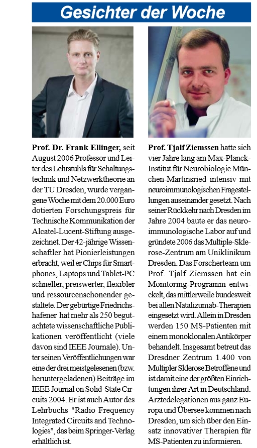 Prof. Frank Ellinger erhält Alcatel-Stiftungspreis |