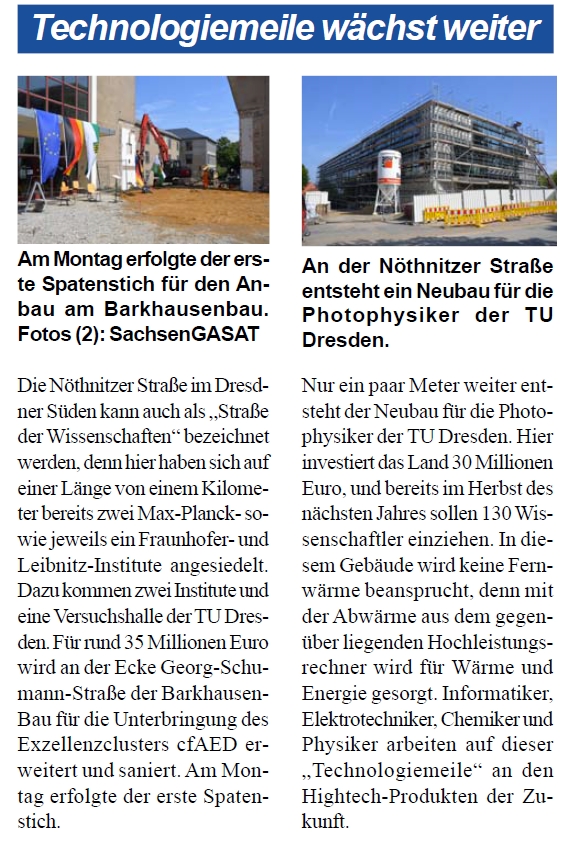 | 15.06.2012 | TU Dresden | Cluster of Excellence "Center for Advancing Electronics Dresden" granted! |